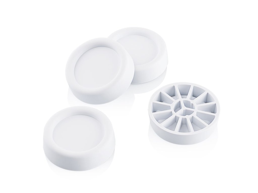 Instalace antivibračních podložek je více než jednoduchá. Stačí spotřebič nadzvednout a podložky zasunout na místo. Antivibrační podložky jsou použitelné s nožičkami do maximálního průměru 4,6 cm a v balení najdete 4 ks.