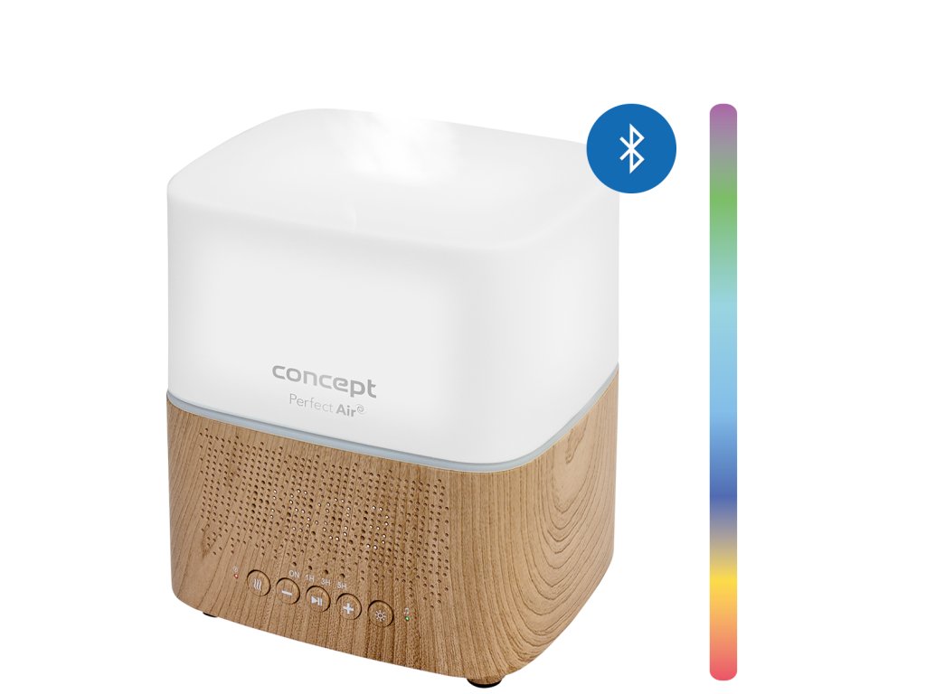 Atraktivní aroma difuzér Concept DF2010 okouzlí svými funkcemi. Kromě aromaterapie ho můžete využít jako zvlhčovač, Bluetooth reproduktor nebo budík. S nádobkou o objemu 300 ml nabízí až 10 h nepřetržitého provozu. I přes svůj minimalistický design je vhodný do místností o velikosti až 50 m2. Je zpracován z kvalitního antibakteriálního materiálu, který zaručuje bezpečný provoz.