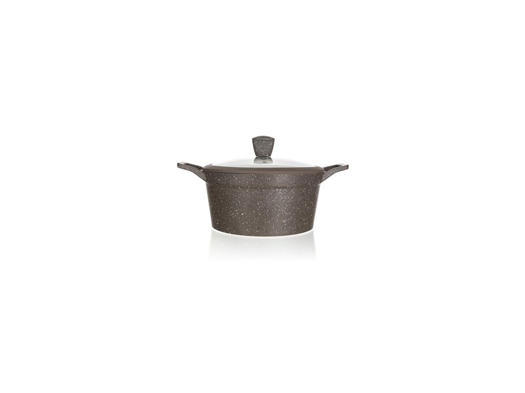 Hliníkový litý kastrol MARRONE se skleněnou poklicí a nepřilnavým povrchem pro přípravu různých pokrmů, o průměru 28 cm. Kastrol má hnědý granitový dekor, plně indukční dno kryté žáruvzdorným granitovým nástřikem a knob se silikonovým povrchem.- Barva: Hnědá