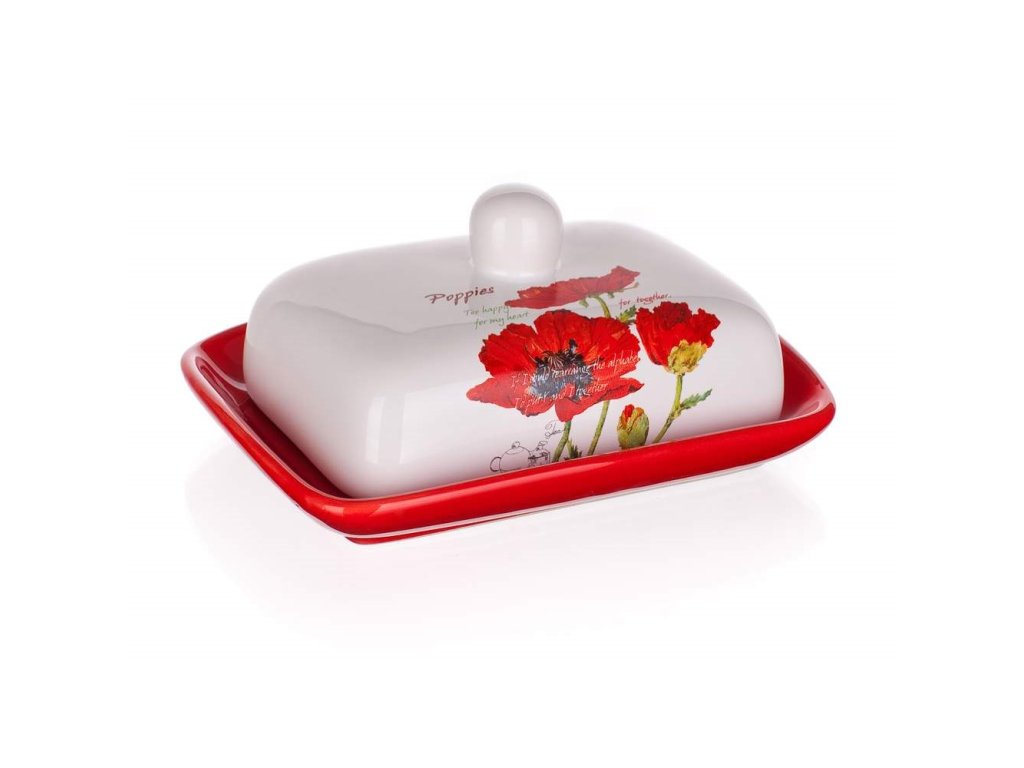 Máslenka Red POPPY, červeno-bílá glazura s dekorem vlčí máky, materiál - keramika, rozměry: délka 17,5 cm, šířka 13 cm, výška 8 cm.Doplňkové parametry