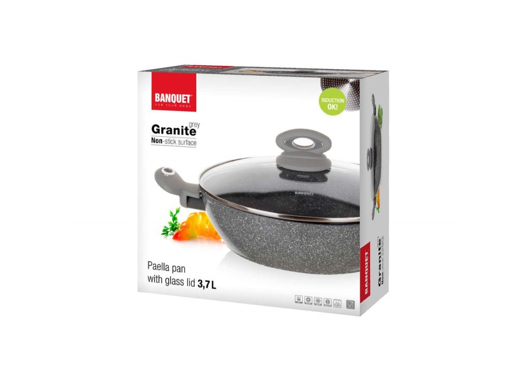 BANQUET Pánev Paella s nepřilnavým povrchem GRANITE Grey 28 x 7,5 cm, s poklicí