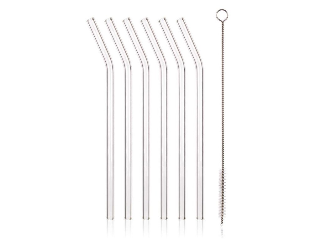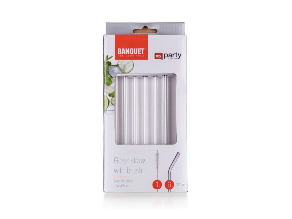 BANQUET Sada skleněných zahnutých brček MY PARTY 20 cm, 6+1, s kartáčkem
