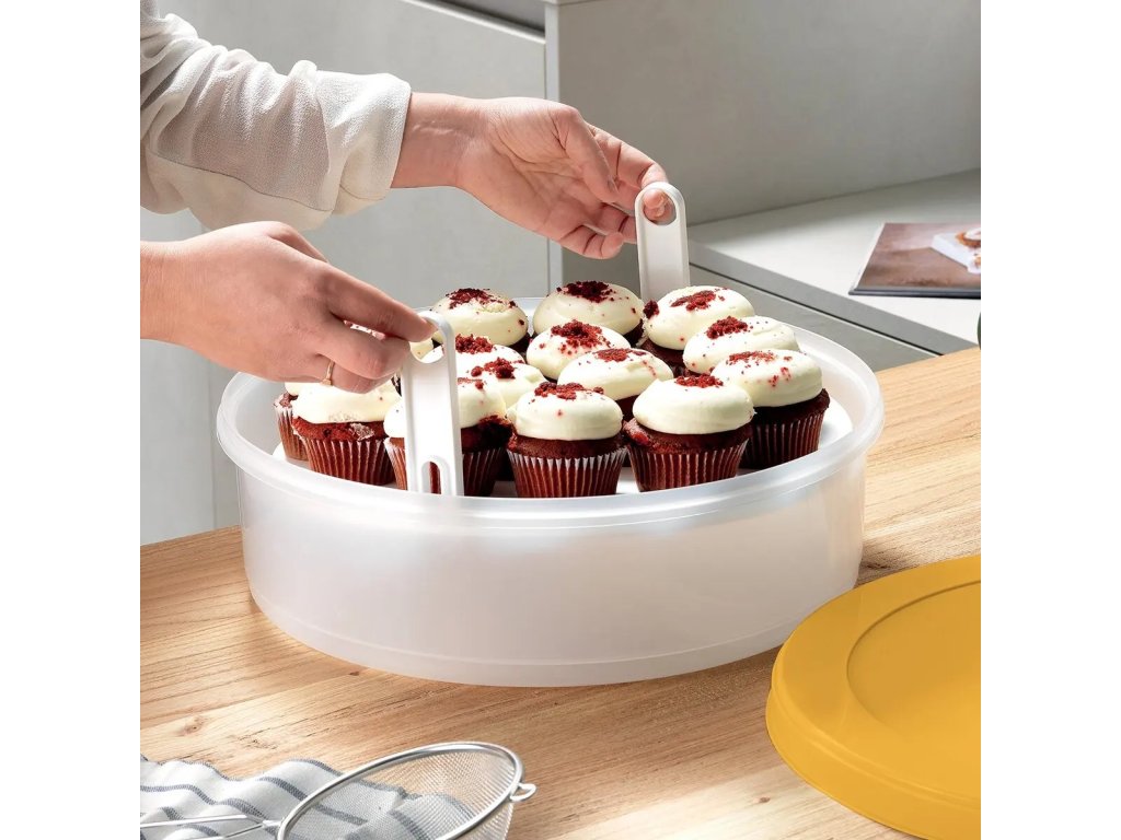 Box na dort s praktickým víkem a snadno vyjímatelným vkladem umožní bezpečné přenášení dortů, zákusků, chlebíčků a jiných pochutin. Po odklopení víka můžete občerstvení velmi jednoduše pomocí dvou úchytů z boxu vyjmout. Box slouží nejen k bezpečnému přenášení, ale také k uchování, k ochraně před hmyzem v letních dnech.- Materiál: plast PP (korpus + víko), plast PS (vklad)