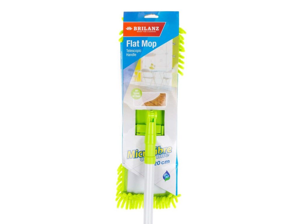 BRILANZ Mop plochý žinylkový s teleskopickou tyčí 120 cm, světle zelený