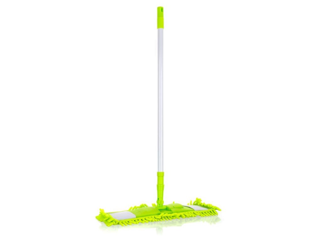 Mop plochý žinilkový s teleskopickou tyčí 68 - 120 cm, barva mopu světle zelená, tyč bílá se světle zelenými plastovým prvky, materiál: žinylka 80% polyester / 20% polyamid.Doplňkové parametry