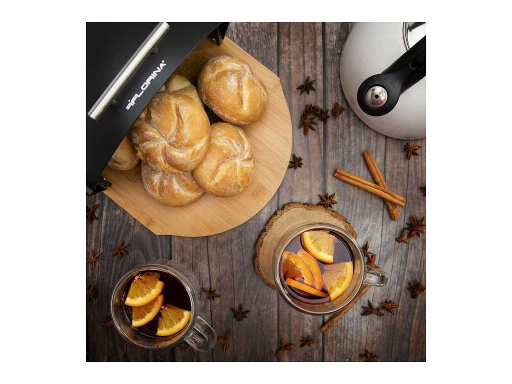Chlebovka s netradičním tvarem půlkruhu. Je vyrobena z černého plastu a základna pak z bambusového dřeva. Chlebovka ochrání pečivo před okoráním a případně hmyzem. Chlebník má bambusový základ, na kterém je upevněna plastová komora se sklopnou klapkou. Snadno pojme pečivo pro celou rodinu.