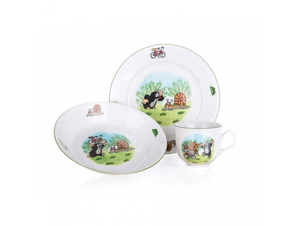 Talíř, miska a hrneček budou věrnými společníky vašich dětí při každém jídle. Ať už jde o snídani, svačinu nebo večeři, díky roztomilému designu s Krtečkem bude stolování o to zábavnější. Děti můžete motivovat k dojedení, když na dně talíře objeví Krtečka a jeho kamarády.