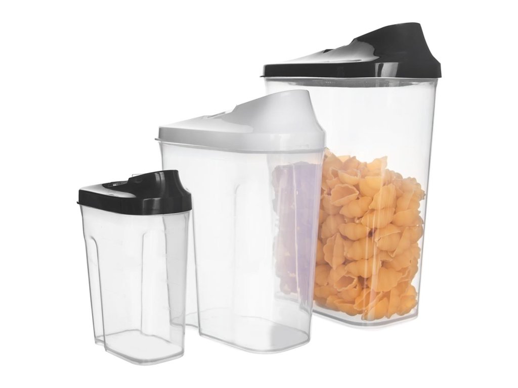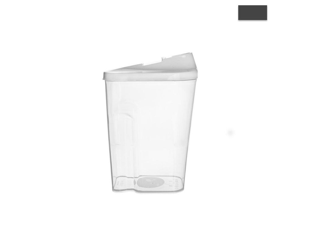 Dóza s dávkovačem. Materiál: plast. Barva víček dle aktuální nabídky. Rozměry: celkový objem 0,27 l, 5x8x12,5 cm. Vhodná do MVT do 95 °C (bez víčka). Lze mýt v myčce na nádobí. Vhodná do mrazničky -25 °C. Odměrka 50 - 250 ml (po 50 ml).Doplňkové parametry