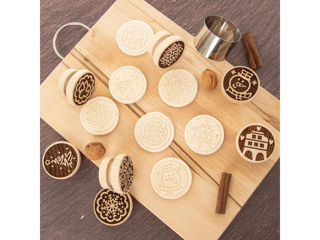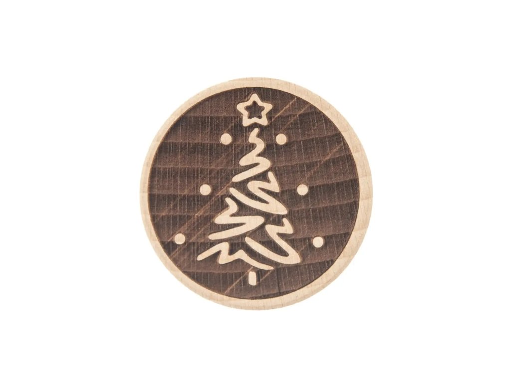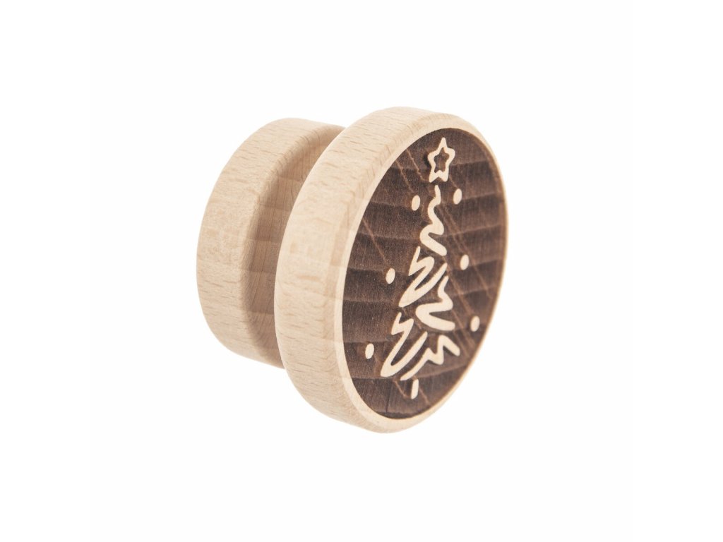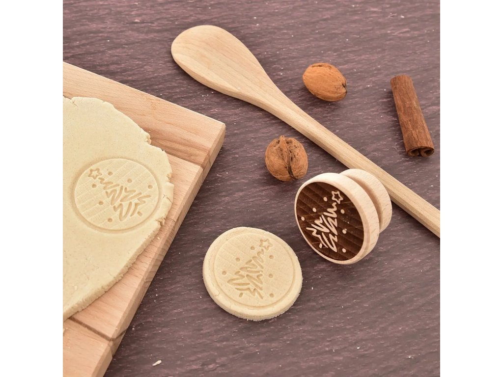 Zábava pro velké i malé pekaře s originálním razítkem z bukového dřeva. Do vyváleného těsta, ideálně takového, které neobsahuje kypřící přísady nebo sodu, stačí otisknout razítko a běžnou kulatou vykrajovačkou průměru 5,5-6 cm vykrojit sušenku. Bude mít krásný plastický reliéf zobrazující vánoční stromeček, který potěší vaše milované nejen v době Adventu, ale i u odpolední kávy nebo dobrého čaje po víkendovém obědě.