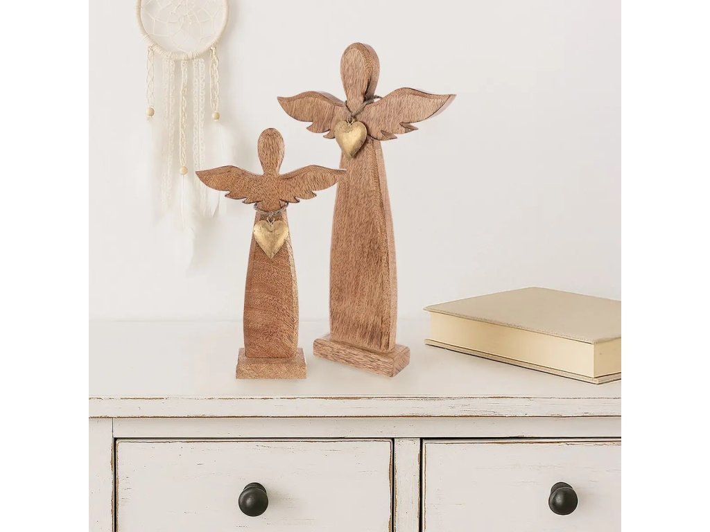 Dřevěný anděl Orion MANGO 16x26cm