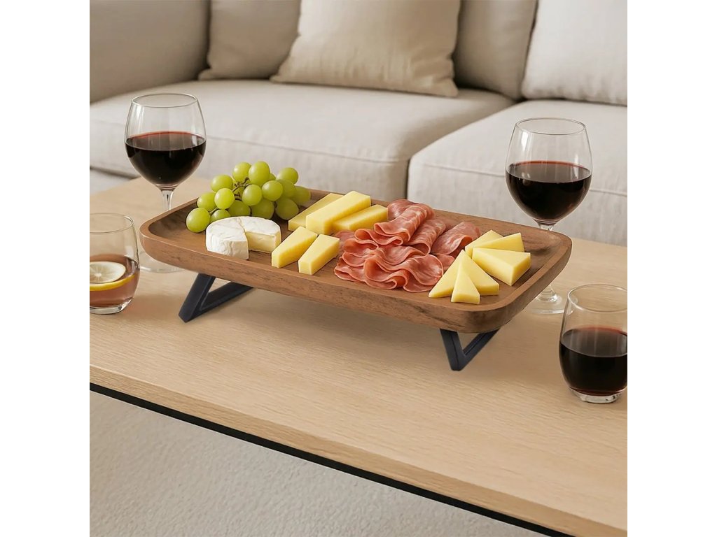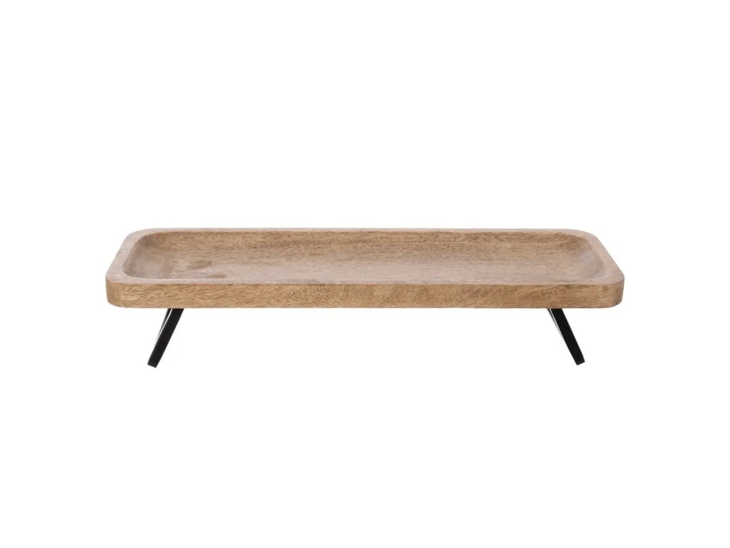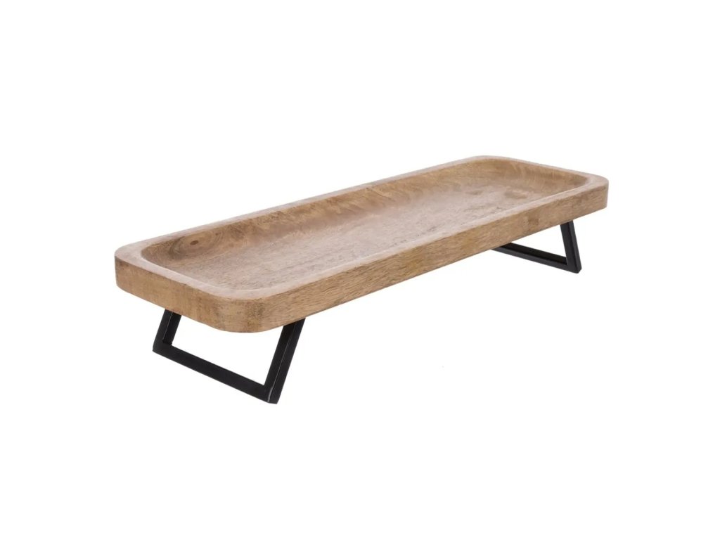 Servírovací tác z mangového dřeva nabízí jedinečný nevšední vzhled a skvěle se hodí pro servírování předkrmů, sladkostí nebo jako designový prvek pro vystavení dekorací, svíček či sušených květin. Pevná konstrukce a zvýšené postavení na černých kovových nohách dodávají tácu stabilitu i originální vzhled, který ozvláštní každý stůl či komodu.