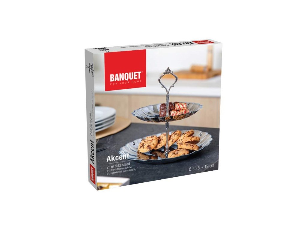 Dvoupatrový chromovaný stojan na cukroví Banquet AKCENT