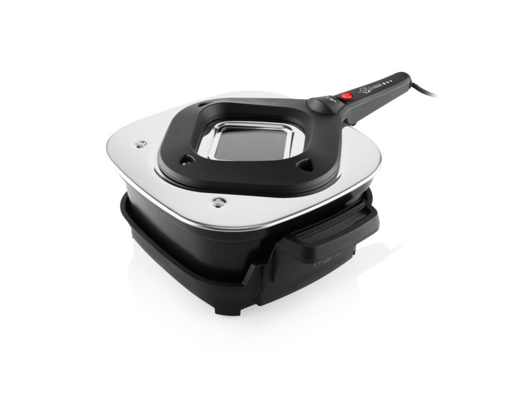 Topné těleso je umístěno přímo ve víku, což zajišťuje rovnoměrné rozložení tepla a rychlé propečení. Díky vysoké účinnosti ohřevu je provoz výrazně energeticky úspornější než u klasické trouby.