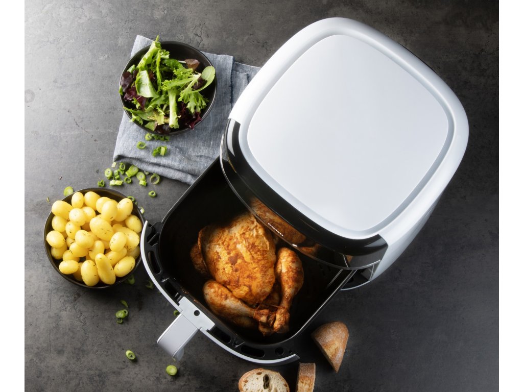 Extra velká kapacita nádoby (8 litrů) upeče až 2 kg zdravých a křupavýchg pokrmů. Digitální nastavení teploty mezi 80 °C až 220 °C v kombinaci s časovačem znamená, že se o průběh frittování už nemusíte skoro vůbec starat.
