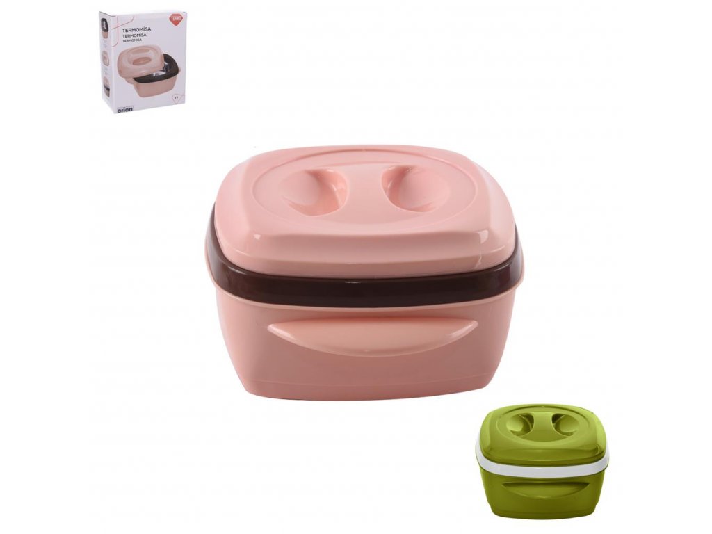 Termomísa v plastovém obalu s nerezovým vnitřkem udrží vložený pokrm po dlouhou dobu teplý nebo naopak chladný. Snadné uzavření otočením plastového termo víčka. Materiál: nerez, plast. Assort barev. Hranatý tvar. Rozměry: 17,5x17,5x10 cm, objem 1 l.Doplňkové parametry