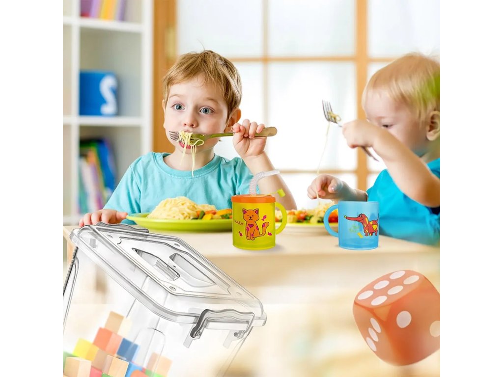Lehký plastový hrneček, který má roztomilý a vtipný potisk a při pádu nebo nešetrném zacházení se nerozbije tak jako např. skleněný nebo porcelánový. A co je nejdůležitější, vaše malá ratolest z něho bude pít ráda, takže si zároveň můžete pohlídat množství tekutin, které vaše dítě přes den vypije.