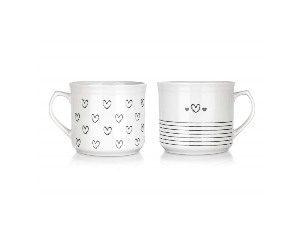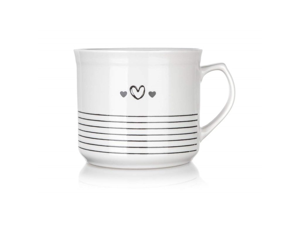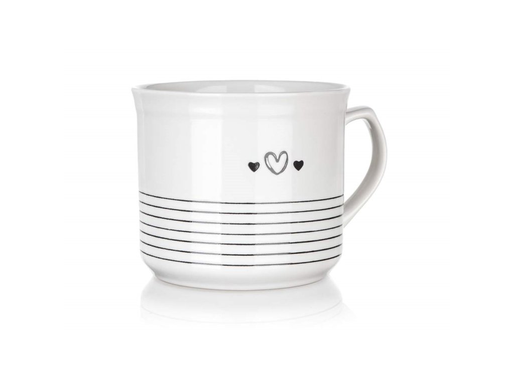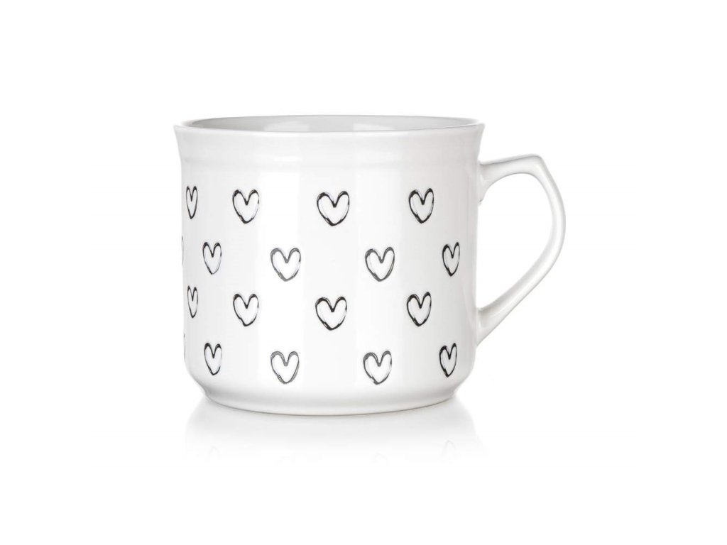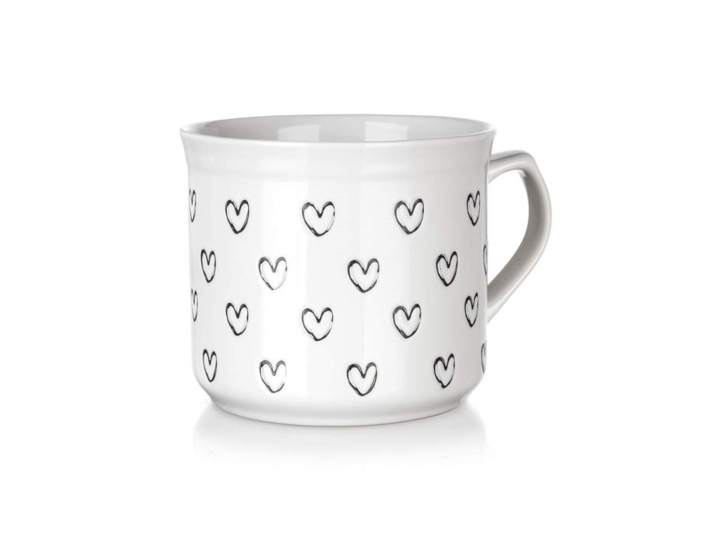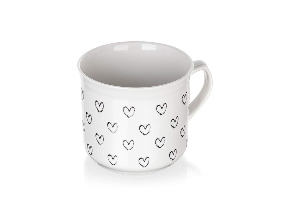 Hrnek BIG 660 ml s perokresbou černých srdíček, barva bílá, výška 10 cm, průměr 11,2 cm, materiál - keramika. Hrnek lze používat do mikrovlnné trouby a mýt v myčce na nádobí.Doplňkové parametry