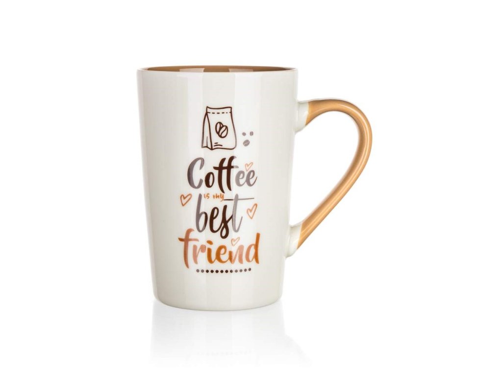 Hrnek keramický COFFE BEST FRIEND o objemu 450 ml, je vhodný na horké i studené nápoje. Výška hrnku je 12,5 cm, průměr horní 8,5 cm a průměr dolní 6,8 cm. Hrnek lze použít do mikrovlnné trouby a mýt v myčce na nádobí.