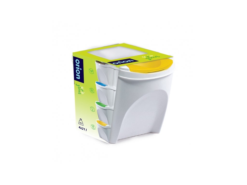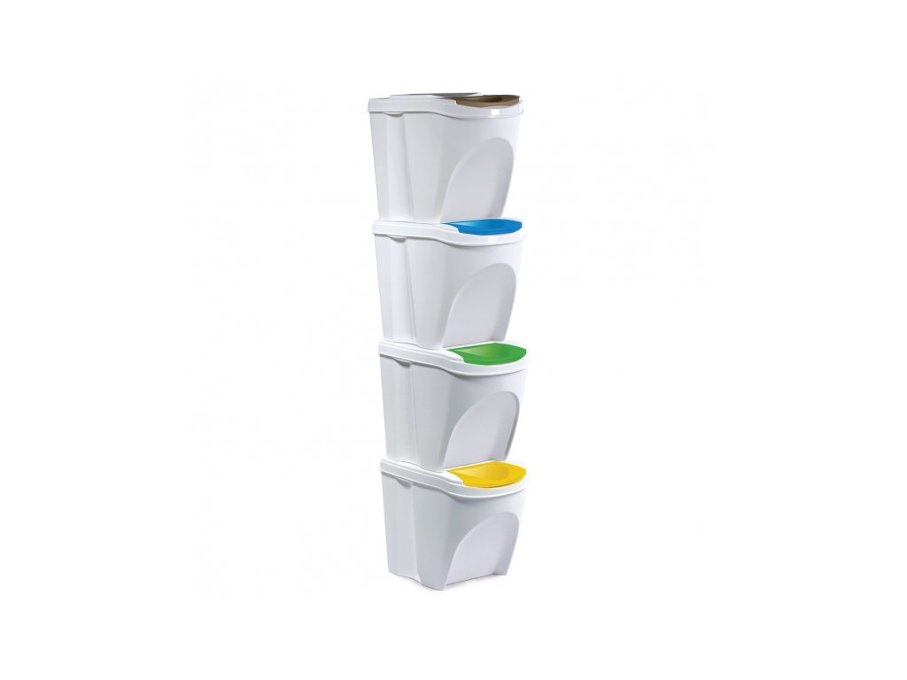 Modrá na papír, zelená na sklo, žlutá na plast a hnědá na bioodpad. Tento set čtyř odpadkových košů můžete poskládat na sebe a využít jej pro třídění odpadu ve vaší domácnosti. Každá z nádob má objem 21 l a celkový rozměr sestavy (4 koše nad sebou) je 29,5×39,5×131 cm.