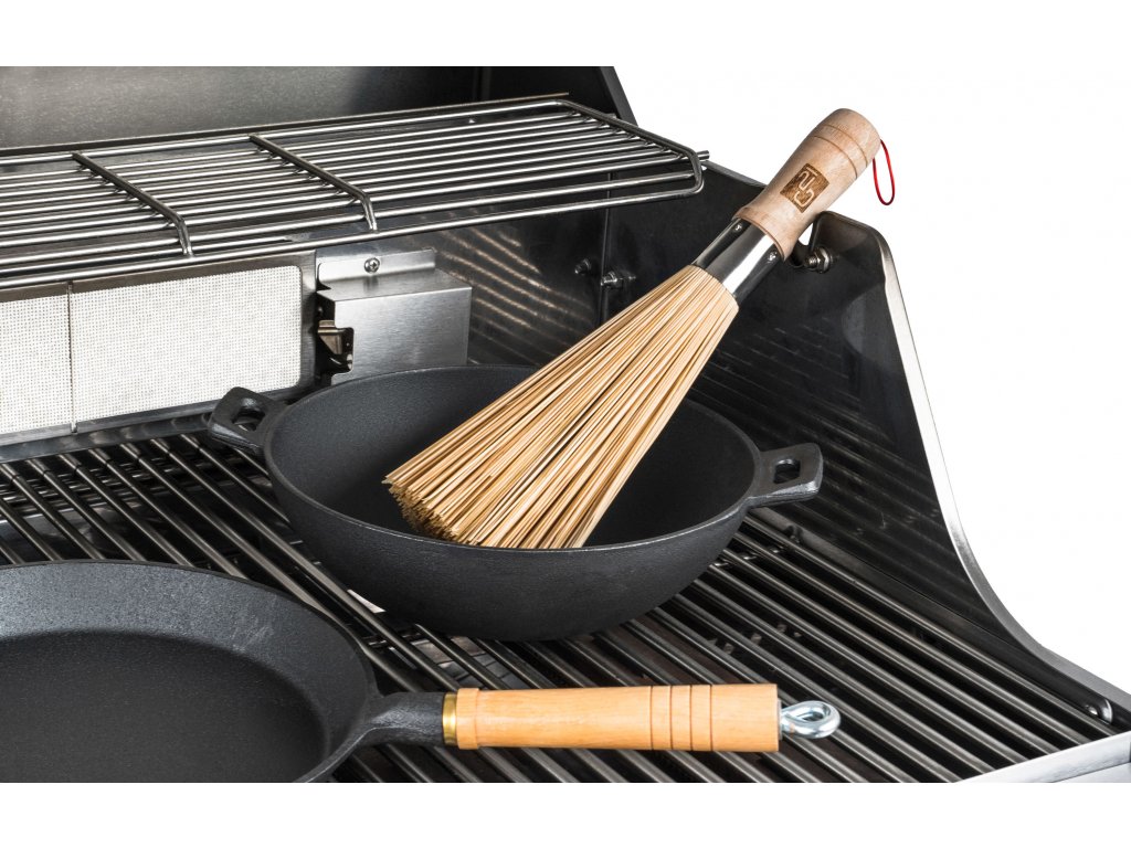 Znásobte svůj požitek z dokonalého grilování – grilujte na litinovém nádobí. Grilovací wok pánev z vysoce kvalitní litiny perfektně rozvádí a udržuje teplo. Litinová grilovací wok pánev je již vypálená a připravená k použití, takže první vypalování (jinak zvané také seasoning) už provádět nemusíte. Objevte kouzlo grilování na litině a užijte si všechny jeho výhody.
