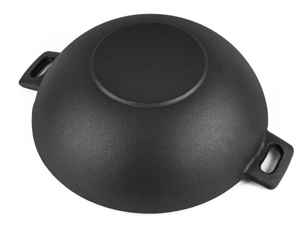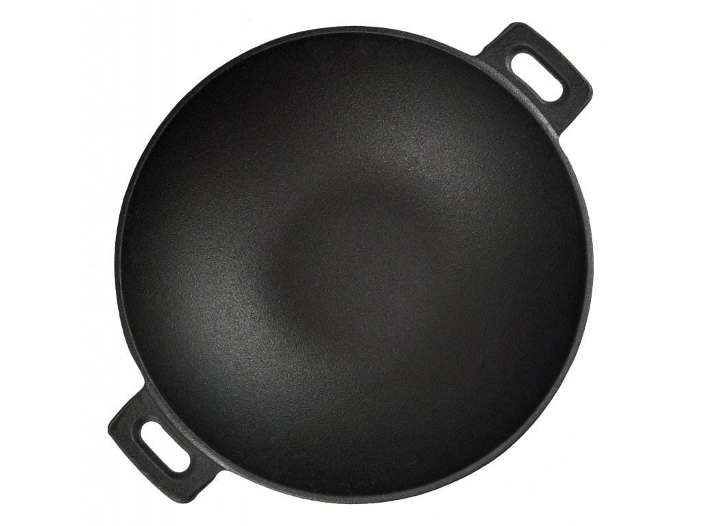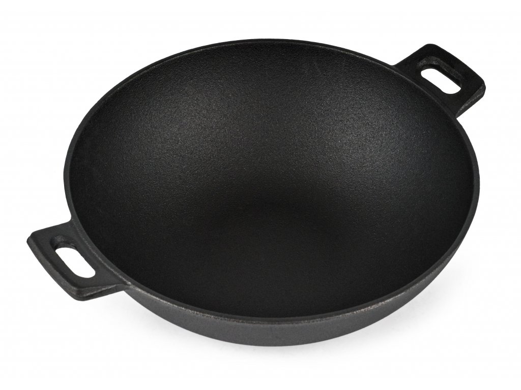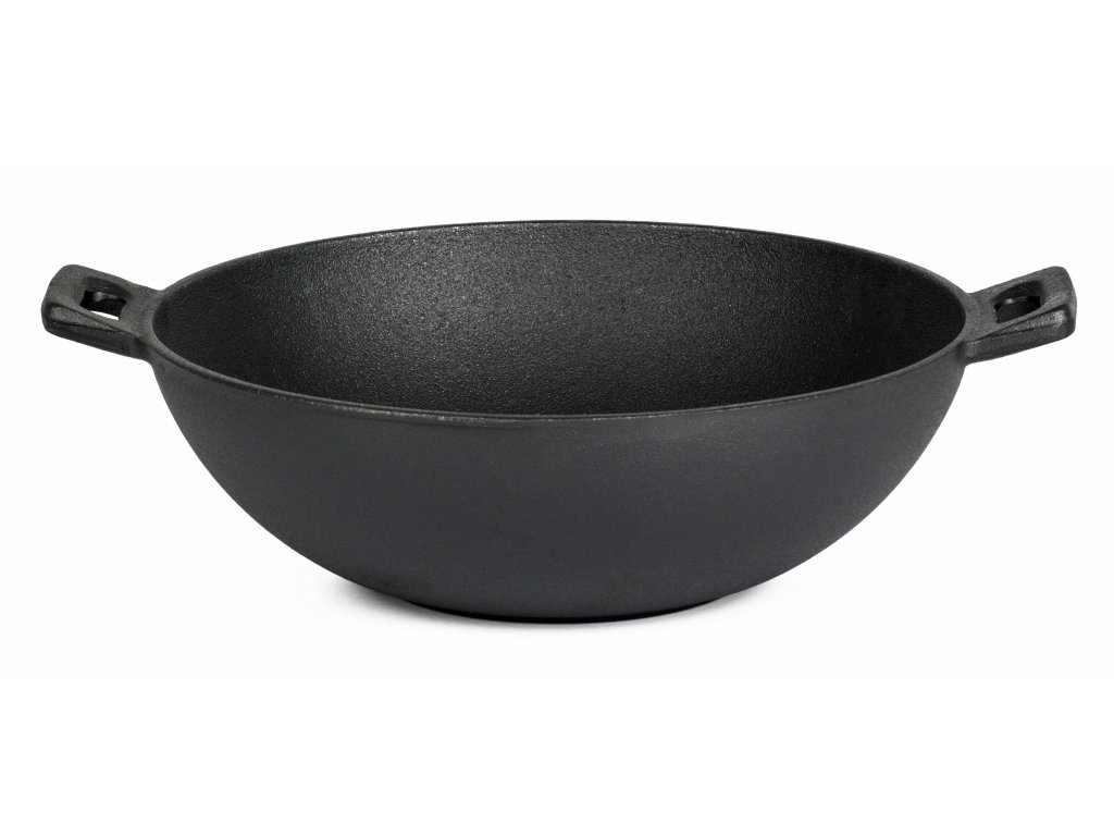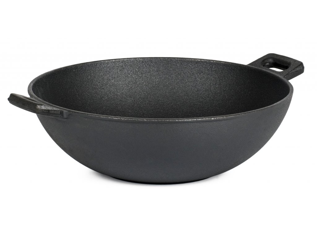 Prémiový grilovací wok z poctivé litiny, průměr 24 cm, výška 8 cm, dvě litinová madla.