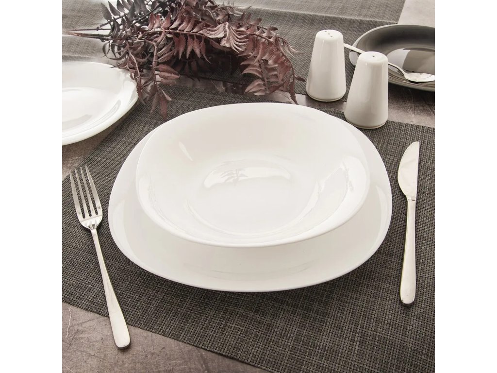 Talíř hranatý mělký bílé barvy.