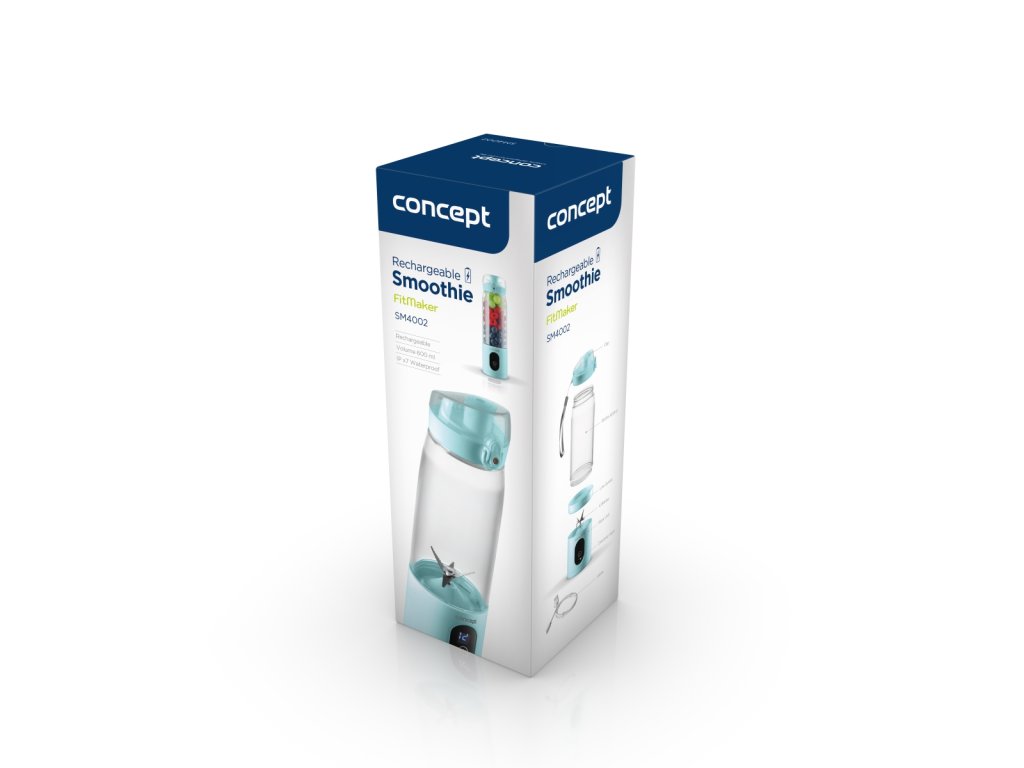 Smoothie FitMaker Concept SM4002 je pro každého, kdo žije aktivním životním stylem a touží si snadno a rychle připravit zdravé smoothie kdykoliv a kdekoliv. Disponuje integrovanou Li-Ion baterií, takže nejste závislí na přítomnosti zásuvky. Díky svému kompaktnímu a lehkému zpracování se pohodlně vejde do batohu nebo kabelky a vy si ho tak můžete vzít kamkoliv s sebou – na výlet, do práce nebo na cvičení.