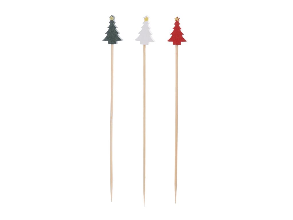 Bambusová napichovátka s barevnou ozdobou ve tvaru STROMEČKU využijete při servírování drobného slaného nebo sladkého pohoštění při různých příležitostech, oslavách, na zimní párty, na vánoční setkání... Ozdobí jednohubky, muffiny, dortíky, olivy, kousky sýra... Sada 20 ks.