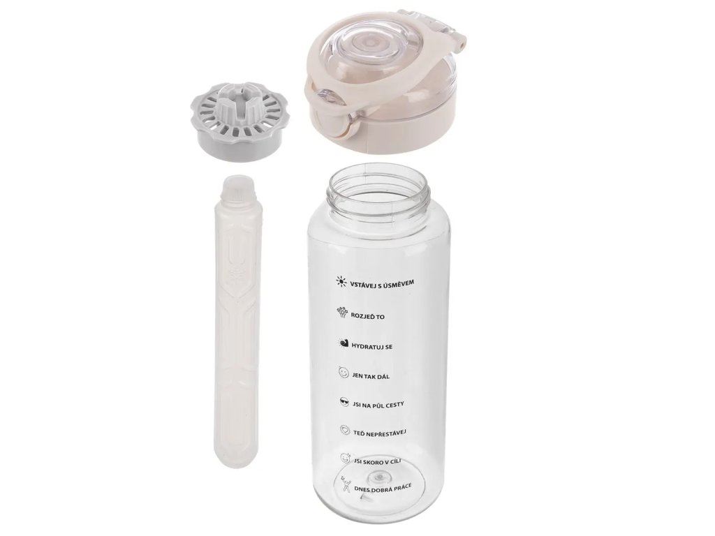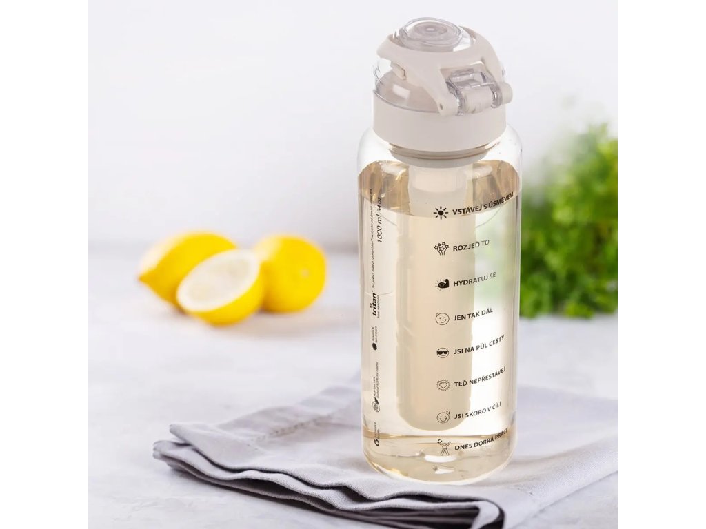 Láhev s pítkem, vkladem na led, víčkem a uchem na zavěšení je vhodná do školy, na výlet, na sport, na studené i teplé nápoje… Vklad s vodou vložíte zmrazit do mrazničky, ten pak ochlazuje nápoj, ale neředí jej vodou z tajícího ledu. Dekor s vyznačenou motivační odměrkou vám zaručí dodržování pitného režimu. Díky ní vypijete dostatek tekutin během dne a to průběžně. Plast TRITAN nejen že neobsahuje plastifikátory, ale má i řadu jiných výhod, které z něj činí populární náhražku skla. Je vysoce odolný vůči nárazům, takže je vhodný nejen pro každodenní použití například do školy, do práce či na turistiku, obdivuhodná je jeho průhlednost a čistota materiálu, lehkost, nepřejímá žádné chutě ani vůně, vydrží nízké i vysoké teploty, může se mýt v myčce na nádobí tedy je snadná údržba, a především neobsahuje žádné zdraví škodlivé látky, odpovídá požadavkům na ochranu životního prostředí a FDA (Úřad pro kontrolu potravin a léčiv).