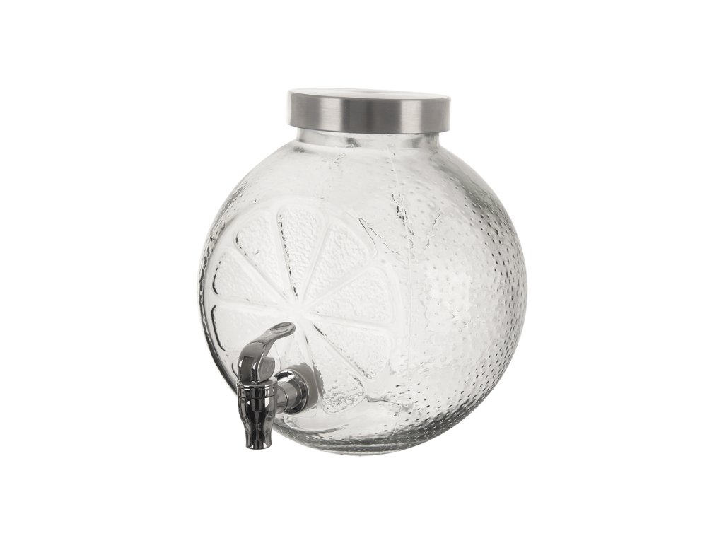 Láhev s kohoutkem na vypouštění tekutiny je vhodná na různé party bowle, ovocné šťávy, limonády. Široký plnící otvor pro snadné vkládání a vybírání ovoce i pro mytí, kovové víčko na závit. Materiál: sklo, kov, plast, silikonové těsnění. Zásobník není vhodný pro horké tekutiny. Nepoužívejte na sycené nápoje. Náhradní kohoutek + těsnění z naší nabídky 181727. Skleněná část vhodná do myčky.- Rozměry: průměr 23 cm, výška 23 cm
