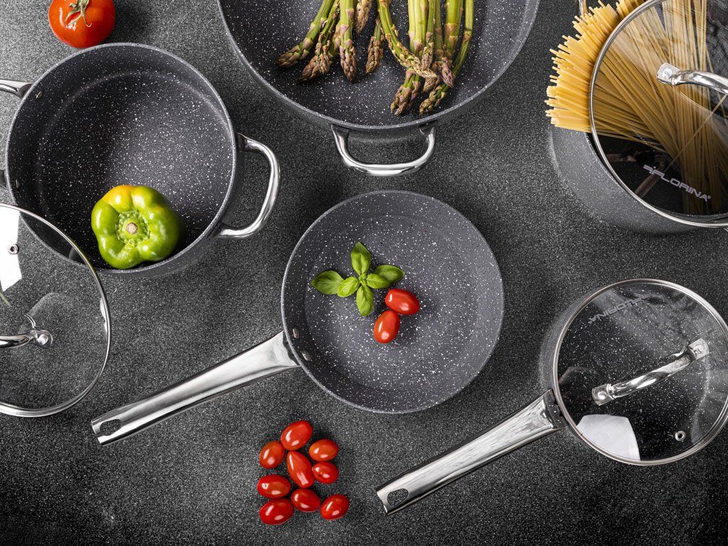 Pokud chcete vařit zdravěji, ale nechcete se vzdát oblíbených smažených jídel, sáhněte po pánvi Florina Onyx. Její povrch tvoří dvouvrstvá nepřilnavá marble úprava, která připomíná přírodní kámen a umožňuje přípravu pokrmů s minimem tuku – bez připalování a bez námahy.
