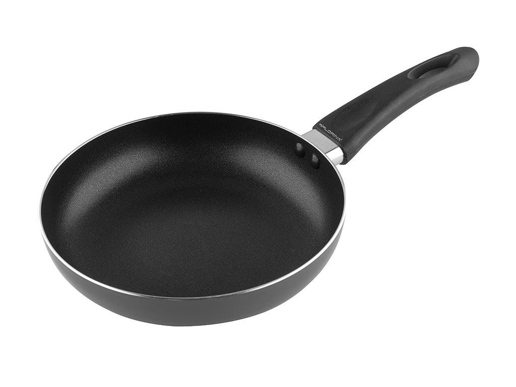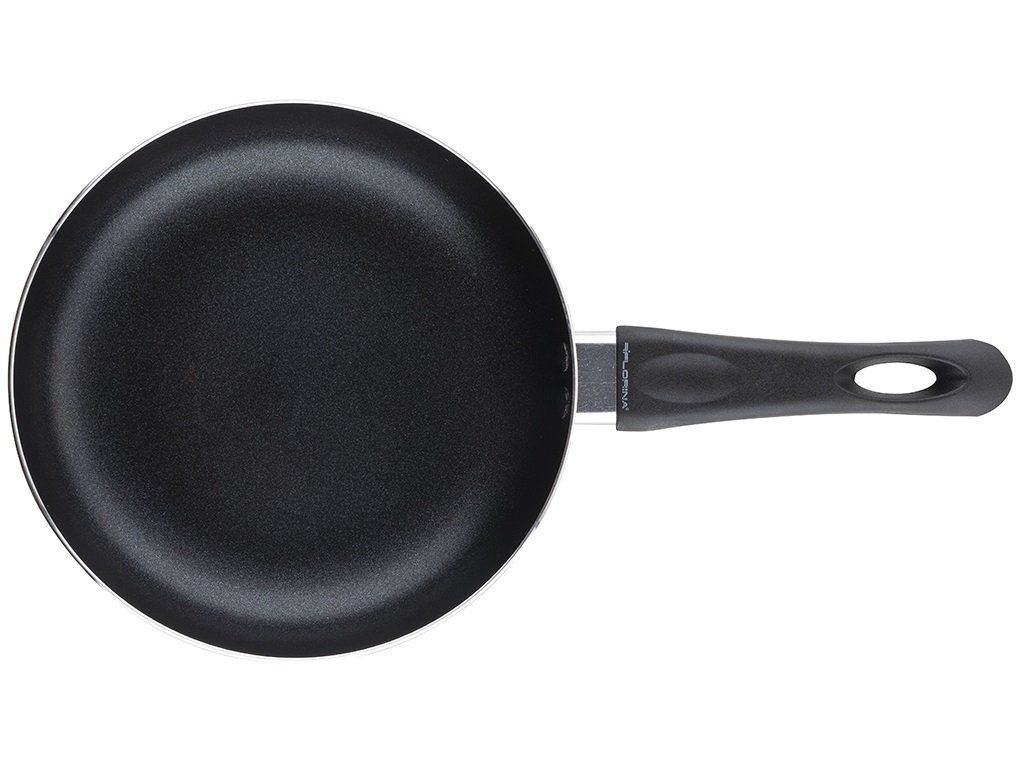 Nepřilnavý černý povrch umožňuje smažit s minimálním množstvím tuku a usnadňuje čištění po vaření. Rovnoměrné rozložení tepla po celé ploše dna zajišťuje, že pokrm se propeče rovnoměrně bez připálených míst. Ergonomická bakelitová rukojeť zajišťuje pohodlné a bezpečné držení. Pánev je odolná vůči poškrábání a zvládne každodenní používání po mnoho let.
