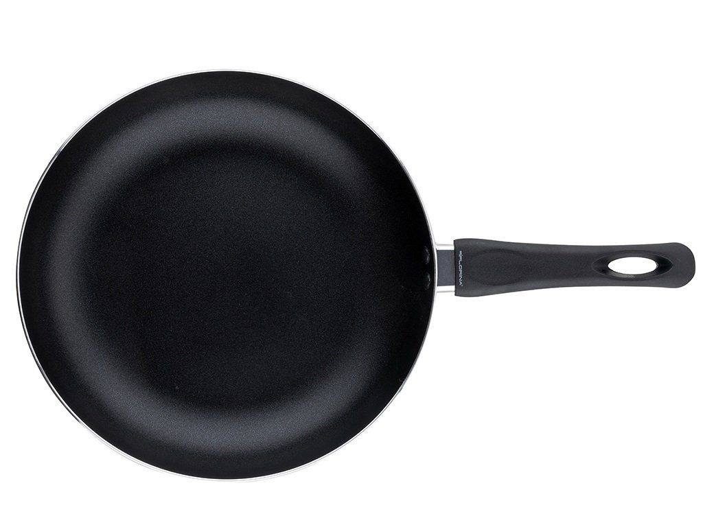 Nepřilnavý černý povrch umožňuje smažit s minimálním množstvím tuku a usnadňuje čištění po vaření. Rovnoměrné rozložení tepla po celé ploše dna zajišťuje, že pokrm se propeče rovnoměrně bez připálených míst. Ergonomická bakelitová rukojeť zajišťuje pohodlné a bezpečné držení. Pánev je odolná vůči poškrábání a zvládne každodenní používání po mnoho let.