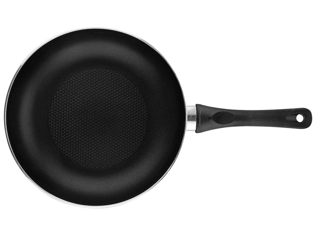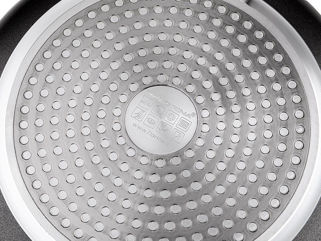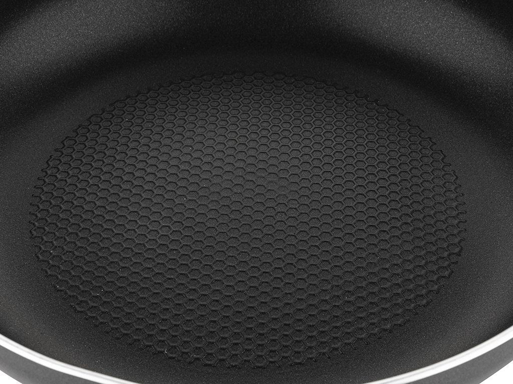 Pánev je vyrobena z lehkého hliníku a má nepřilnavý povrch, který zabraňuje připékání a umožňuje smažení s minimem tuku. Speciální dno se strukturou včelí plástve dále pomáhá snižovat potřebu oleje a přispívá k rovnoměrnému rozvodu tepla. Díky tomu se nádobí velmi rychle nahřívá a potraviny se tepelně upravují rovnoměrně.