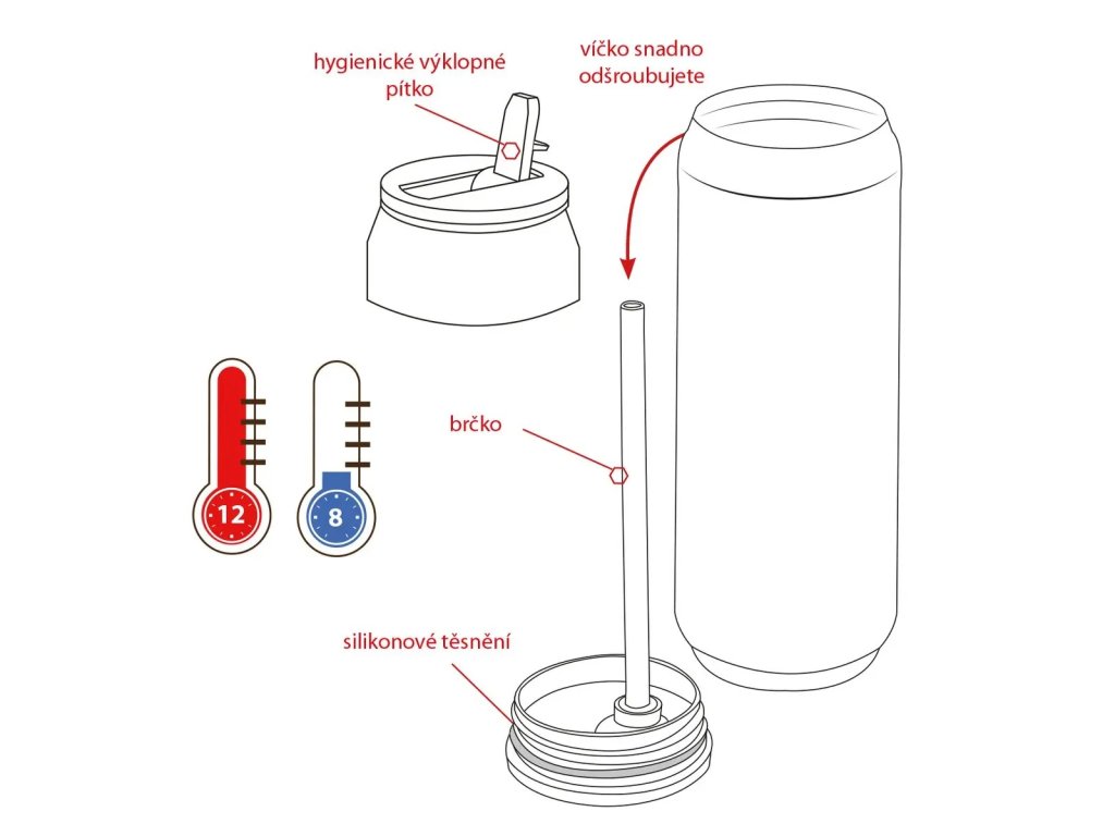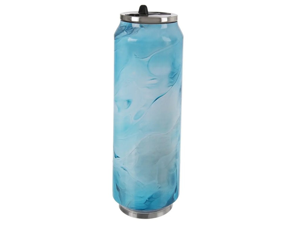 Nerezová termoska s dekorem ve tvaru plechovky je velice zajímavá a nápaditá svým tvarem. Mramorový dekor se na každé plechovce mírně liší a každý kus je tak jedinečný originál. Udrží až 12 hodin teplou a 8 hodin studenou vodu. Čím více je naplněná, tím lépe plní svou funkci. Maximum plnění je však 90 %. Před plněním nalijte do termoplechovky horkou vodu pro teplé nápoje a studenou vodu pro studené nápoje. Nádoba tak přijme teplo nebo se naopak ochladí. Po cca 5 minutách tuto vodu vylijte a naplňte termoplechovku nápojem. Výklopné plastové pítko ve víčku termosky. Víčko na závit se silikonovým těsněním.