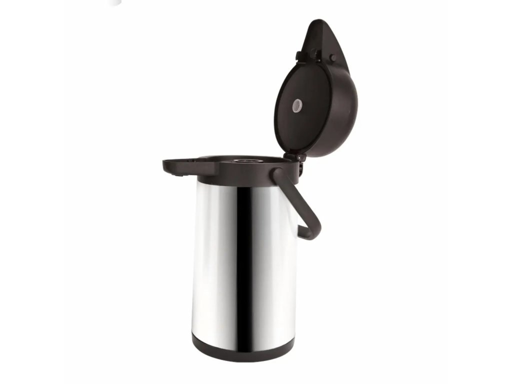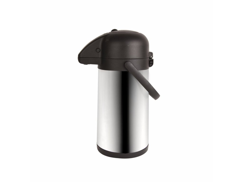 Díky dvojité stěně udrží nápoj dlouho teplý nebo naopak chladný. Se sklopným držadlem na snadné přenášení. Pumpička s aretací vysaje celý obsah termosky až do dna. Otáčivý podstavec zajistí pohodlné natočení termosky.