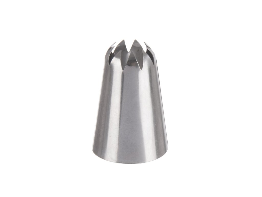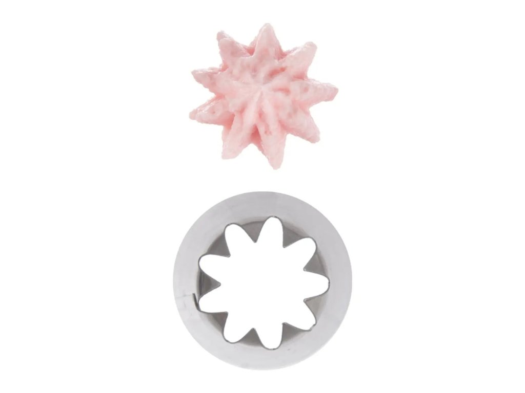 Zdobicí nerezová špička s 9 cípy je určena pro zdobení dortů, zákusků, muffinů, cupcaků a dalších dezertů krémem. Také s ní můžete zdobit jednohubky pomazánkou. Používá se společně s cukrářským sáčkem.