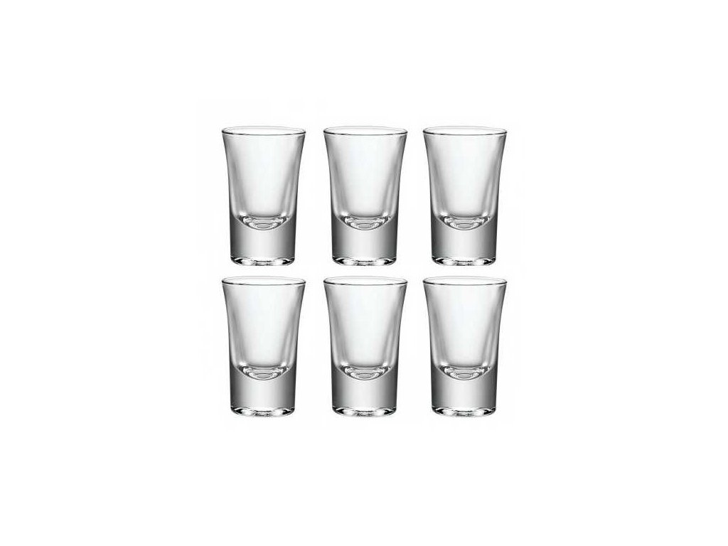 Šestidílná sada krásných odlivek na alkohol. Objem každé štamprle je 34 ml tak je ideální na malou štamprli. Tvar je kónický. Dno panáku je plné a vysoké, díky tomu je sklenice stabilní a snižuje se tak riziko převrácení. Odlivky můžete mýt v myčce na nádobí.- Balení obsahuje 6 ks odlivek