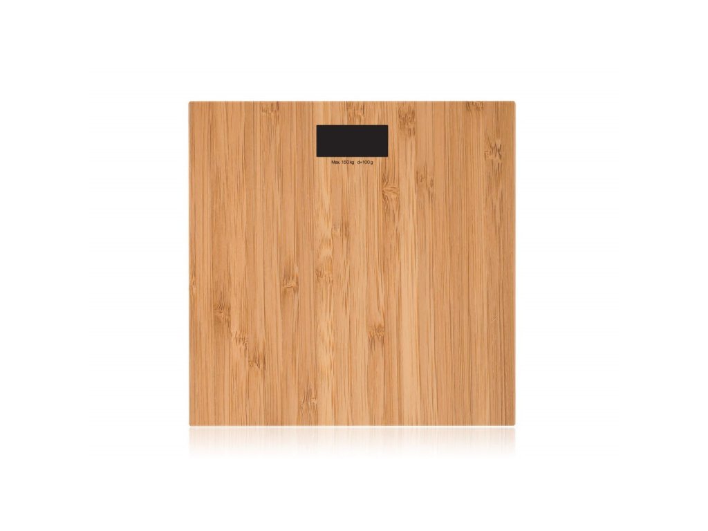 Osobní digitální váha PU-005WN v dekoru dřeva s možností vážení v kg a lb. Váživost 150 kg, indikátor slabé baterie a přetížení, automatické vypnutí, napájení baterií 1 x CR2032 (není součástí výrobku).