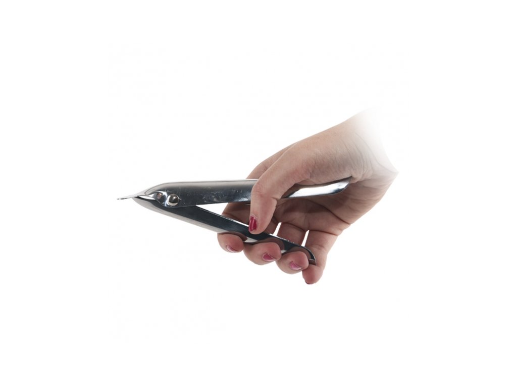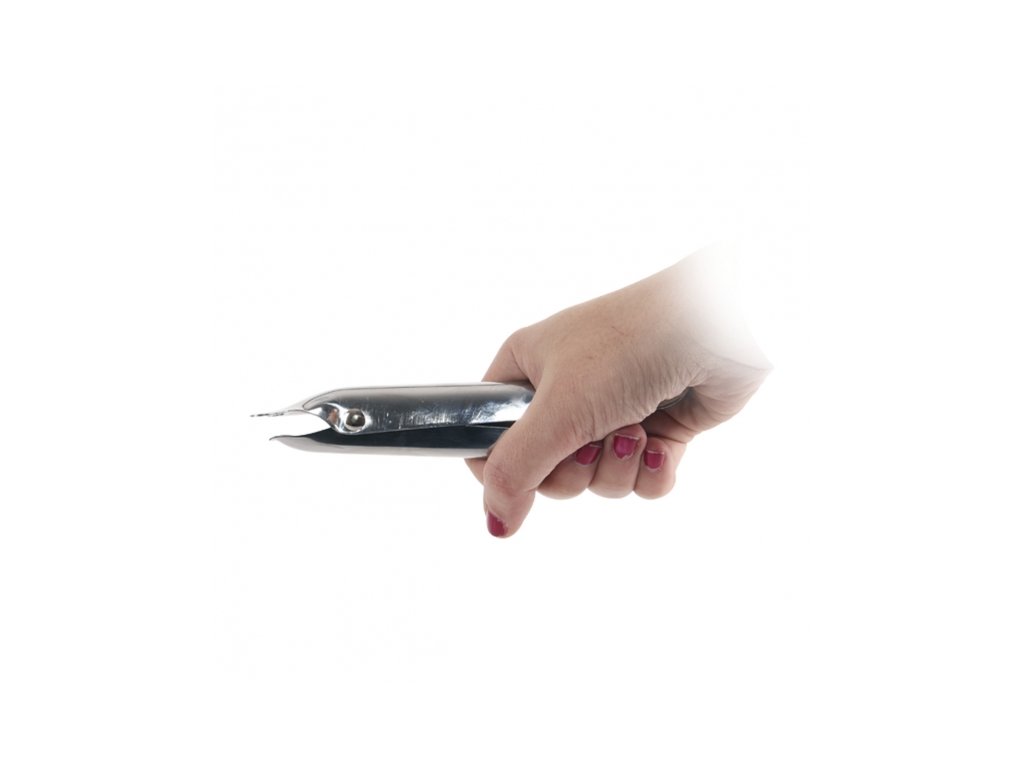 Kleště stačí vsunout pod víčko, mírně zaklonit dolů a lehce stisknout. Tento pohyb způsobí uvolnění víčka, díky čemuž ho můžete bez poškození sundat ze sklenice a při dalším zavařování znovu použít.