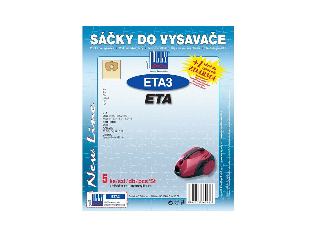 Papírové sáčky do vysavače Jolly ETA3 balení 5+1+1ks do vysav. ETA