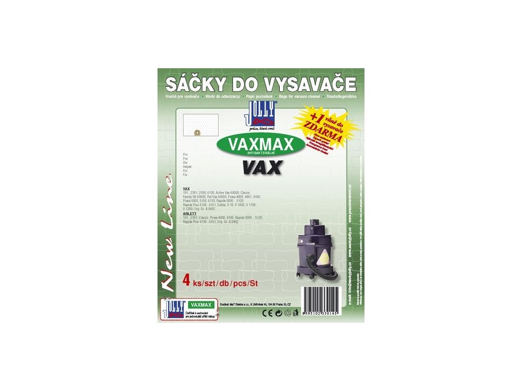 Papírové sáčky do vysavače Jolly VAXMAX balení 4ks do vysav. VAX