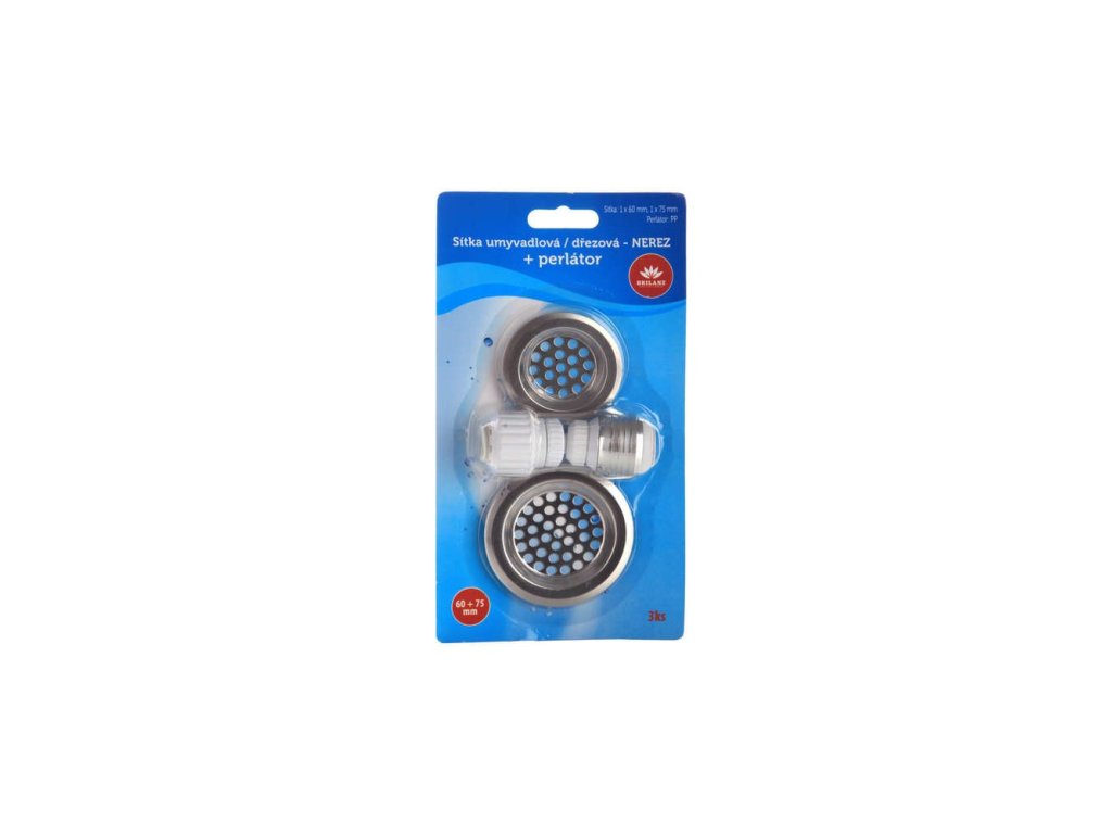 Sítka umyvadlová/dřezová + perlátor BRILANZ, 2 x sítko nerez - velikosti: 6cm+7,5cm, 1x perlátor.