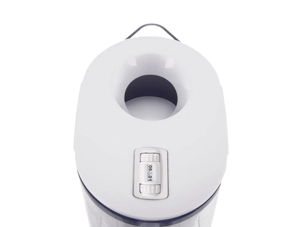 - Materiál: plast ABS (bílá část), SAN (transparentní část), jasanové dřevo (rukojeť).