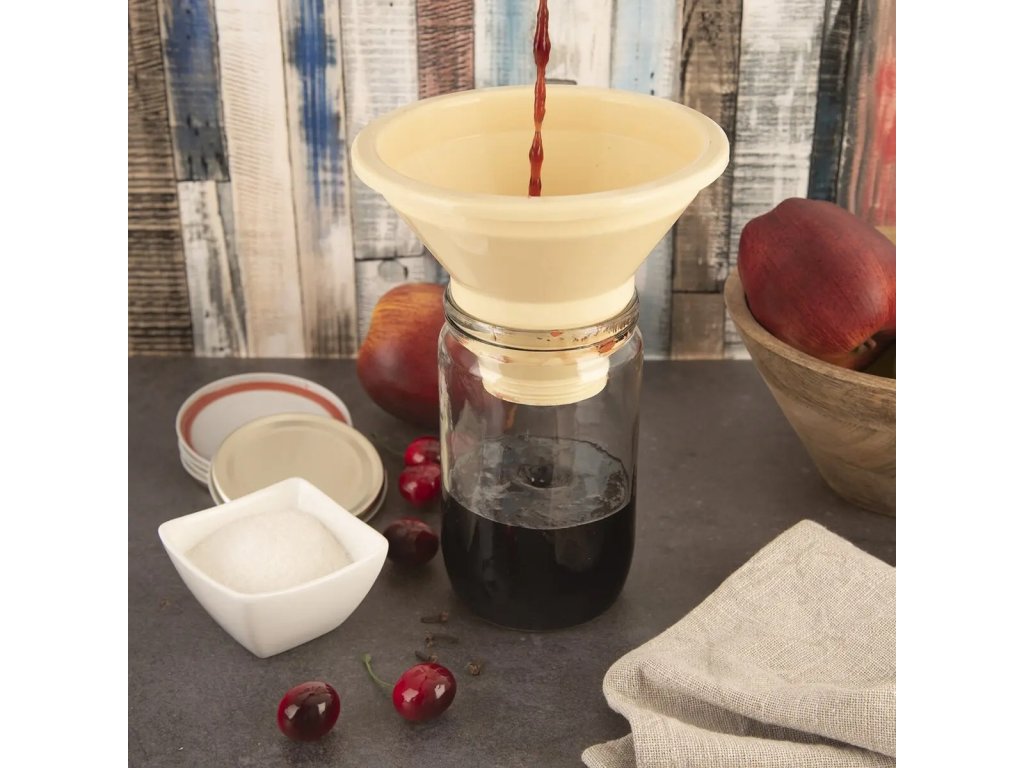 Široká nálevka, neboli trychtýř, je šikovný pomocník při nalévání tekutin do lahví, dóz, sklenic a jiných nádob bez toho, aby se vylily mimo nádobu. Díky svému širokému zakončení je ideální pro nalévání láku, rozvařené marmelády, pečeného čaje nebo domácích přesnídávek do zavařovacích sklenic.
