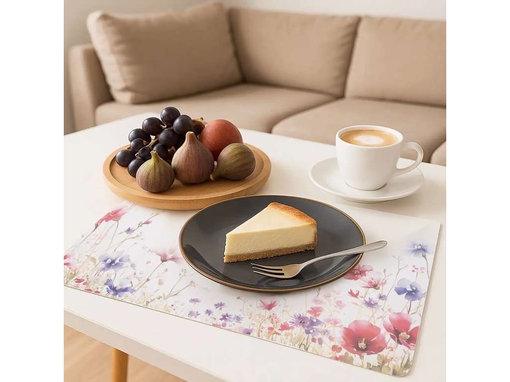 Prostírání s dekorem ochrání stůl nebo ubrus před ušpiněním. Rozjasní prostřený stůl.
