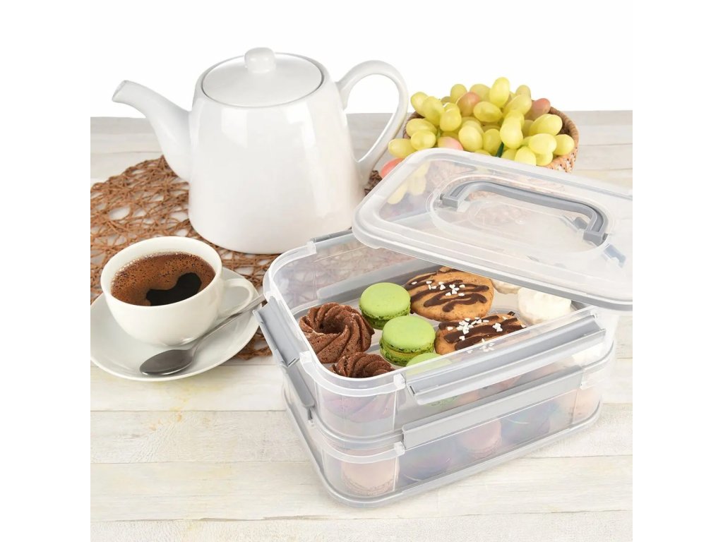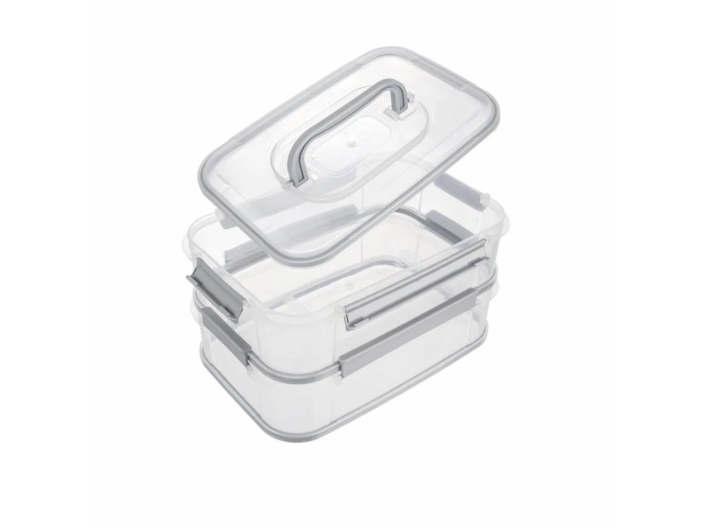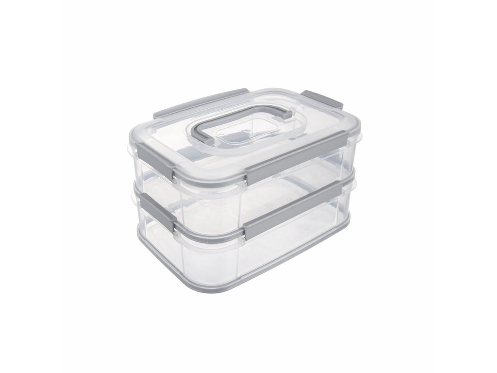Dvoupatrový box s víkem na pevné uzavření pomocí klipů vám pomůže uskladnit i přenášet potraviny. Víčko se sklopným uchem a s těsněním. Při koupi více boxů se dá vytvořit vícepatrová sestava. Lze mýt v myčce, bez víčka také v MVT, lze vkládat do chladničky a mrazničky. Lze jej kombinovat s termobrašnami z našeho sortimentu.