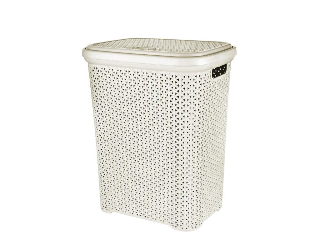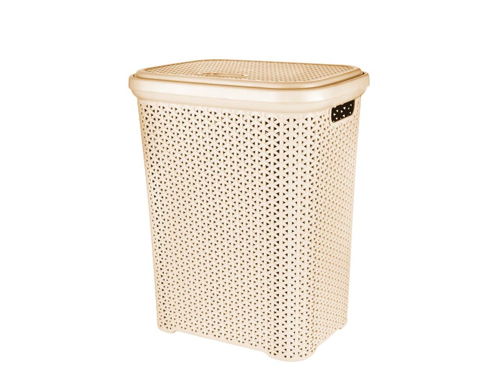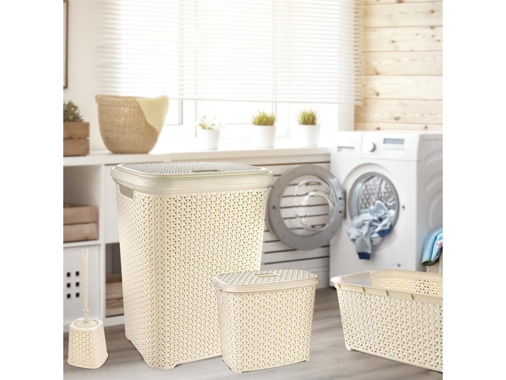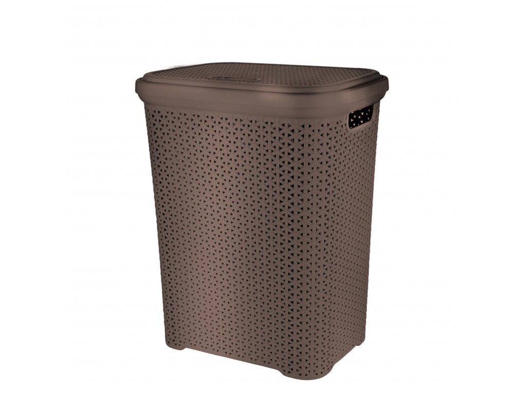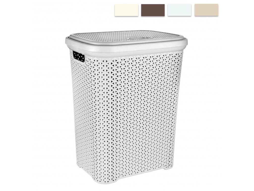 Prádelní koš je vyroben z umělé hmoty a jeho dekor napodobuje ratan. Koš má tvar kvádru a je řešen jako shora uzavíratelný pomocí víka. Plast se snadno udržuje a je poměrně odolný a pružný. Po obou stranách koše na prádlo jsou uši pro snadnou manipulaci. Hodí se do každé domácnosti.
