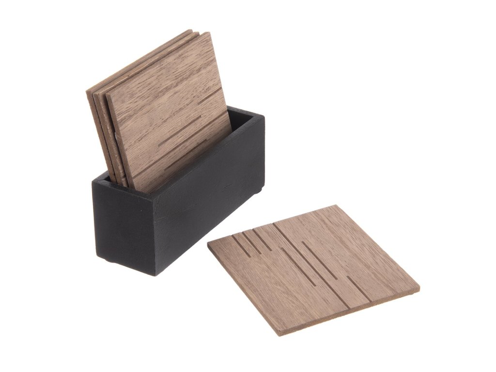 - Materiál: dřevovláknitá deska MDF, silikon (protiskluzové podložky).