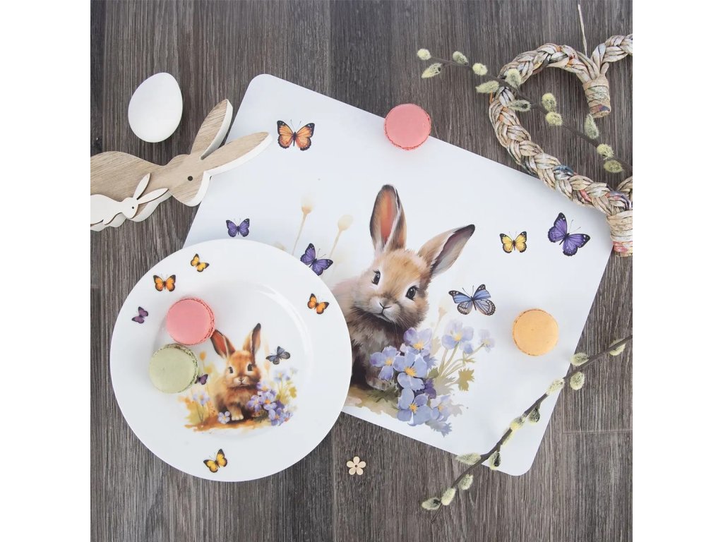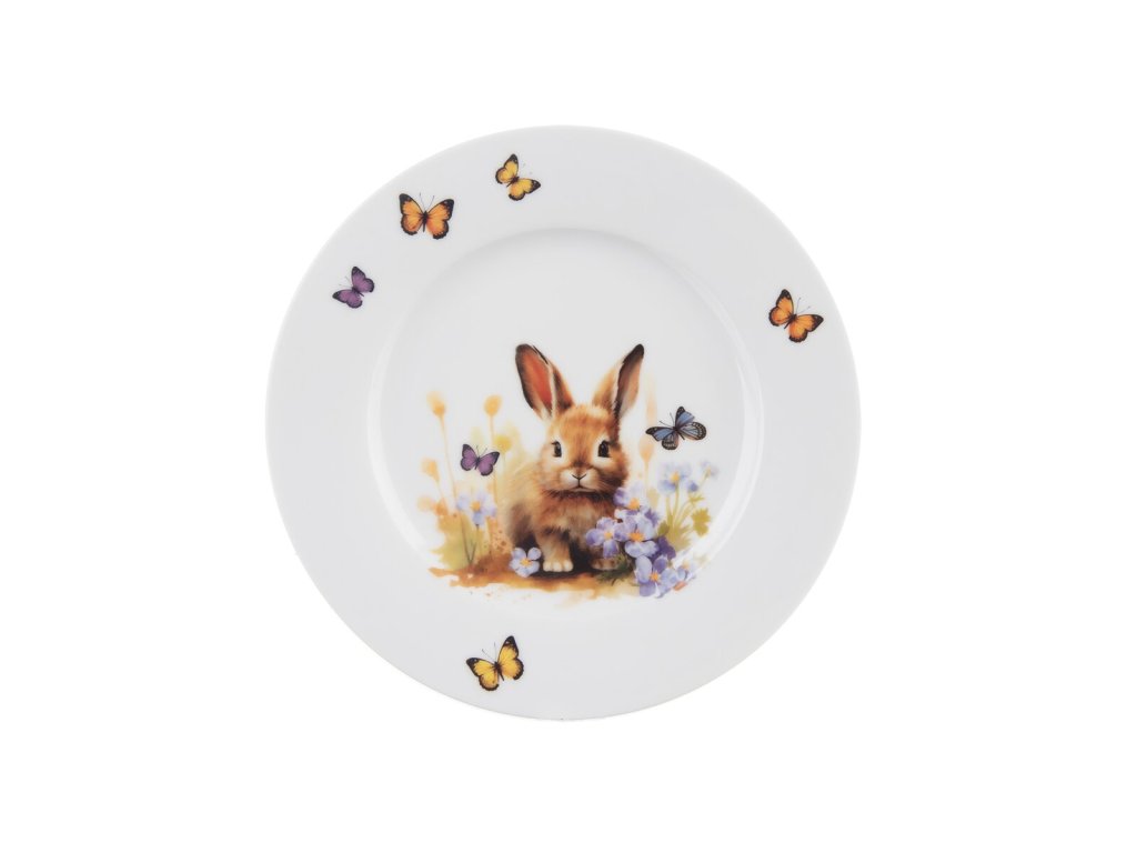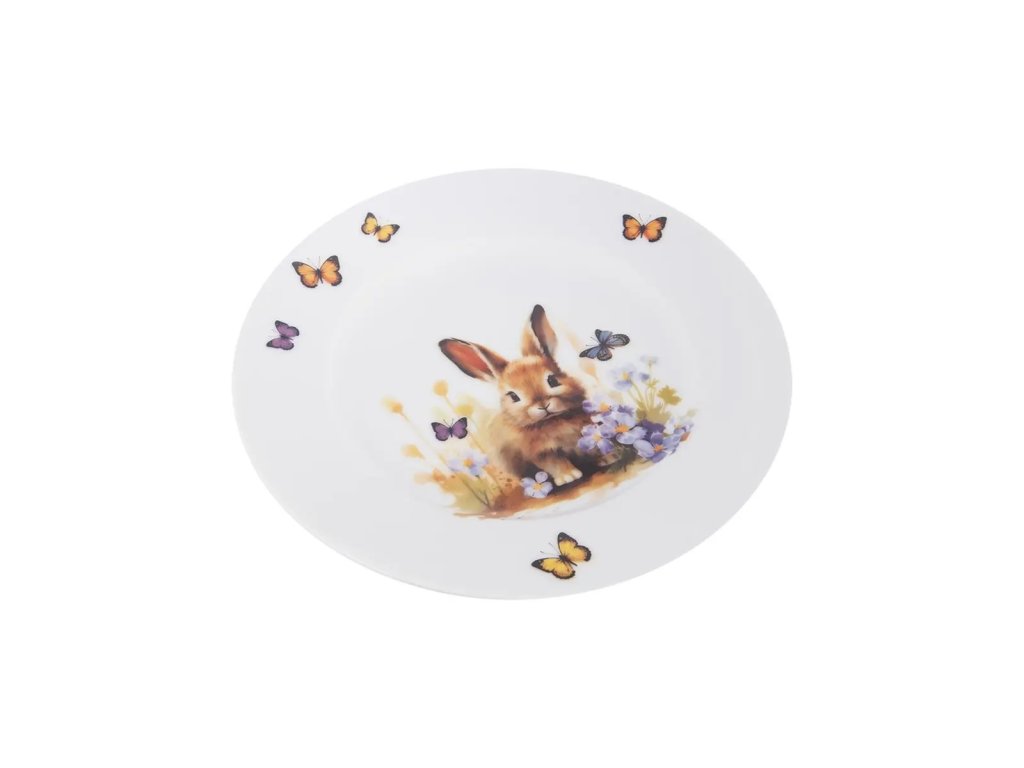 Dezertní talíř s dekorem zajíčka. Z kolekce výrobků JARO. Jarní motiv využijete i na Velikonoce.